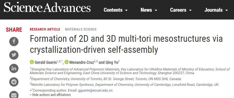 我校材料学院为第一单位,Gerald Guerin教授为唯一通讯作者。